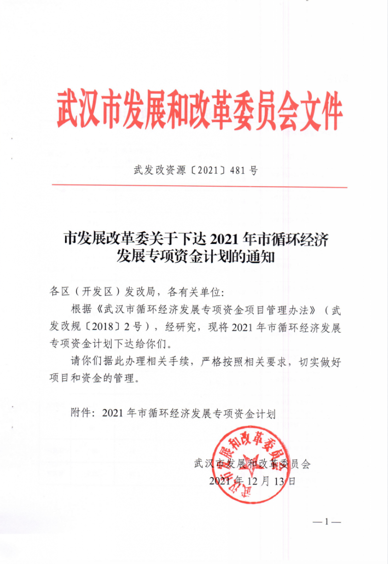 關(guān)于下達(dá)2021年市循環(huán)經(jīng)濟(jì)發(fā)展專項(xiàng)資金計(jì)劃的通知